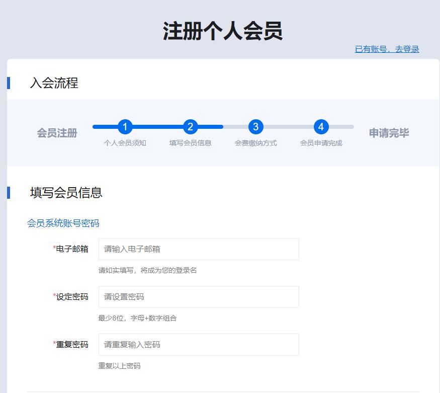 (3)填写完个人信息后进行缴纳会费,会员类别选择一般会员即可,如您有需求,也可以选择高级会员(普通会员会费标准为 5年400元;学生会员会费标准为 5年0元;高级会员会费标准为 5年400元)。