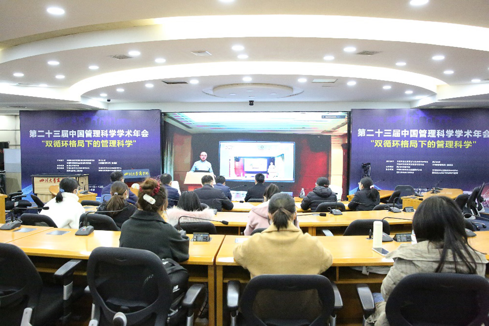 2021年12月11日至12日,第二十三届中国管理科学学术年会在四川大学成功召开。四川大学副校长姚乐野教授、四川大学校长助力商学院院长徐玖平教授、中国工程院杨善林院士、唐立新院士、国家自然科学基金委管理科学部副主任刘作仪教授、中国优选法统筹法与经济数学研究会理事长池宏研究员、中国科学院科技战略咨询研究院院长潘教峰研究员、《中国管理科学》主编、中国科学院大学经济与管理学院常务副院长李建平教授等嘉宾在现场或线上出席了会议。来自全国高校和科研院所、企业的专家学者在线参加了本届年会,直播平台累计观看人数超过10万人次。
